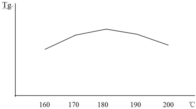 產(chǎn)品層壓時的固化溫度對基板的Tg 影響很大。我們對FR- 4 層壓時的固化溫度與基板的Tg 做了一個對比試驗(yàn), 層壓時的固化溫度分別取160℃,170℃,180℃,190℃,200℃, 相同的層壓壓力, 保溫時間都是60min。我們發(fā)現(xiàn)基板的Tg 在固化溫度180℃時為最高(見圖67)。溫度低于180℃,由于基板固化不充分,所以其Tg 偏低;溫度高于180℃,樹脂將開始出現(xiàn)降解,溫度越高,降解現(xiàn)象越嚴(yán)重,所以其Tg 偏低,基板也開始發(fā)黃。